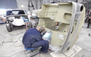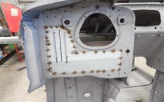 Patches being welded into place once rust has been cut out